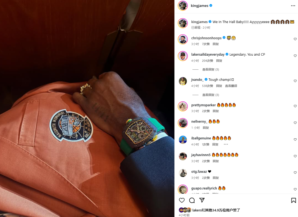 詹姆斯庆祝入选名人堂!湖人悍将称其硬汉冠军 韦德安东尼为他点赞